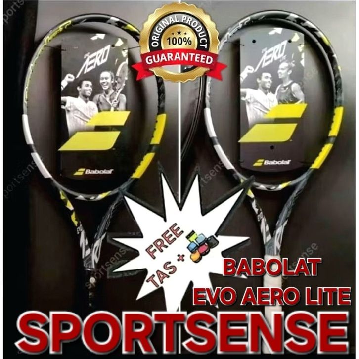 Raket Tenis Babolat Evo Aero Lite Tennis Racket 260gr 275gr 102sq Racquet Original Bonus Cover dan Grip