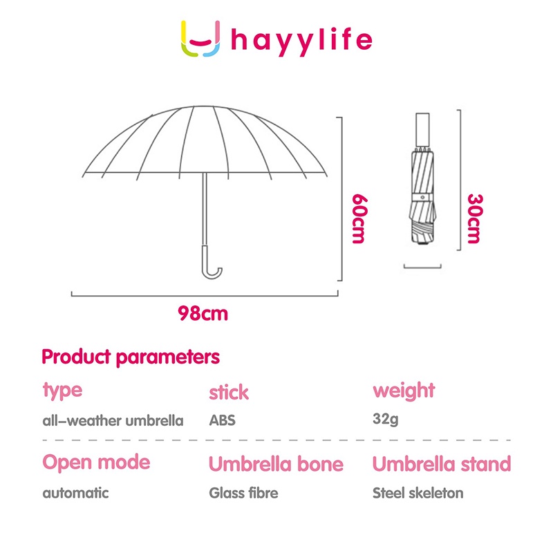 Payung Lipat Dengan Hook Gantungan ahan Vinyl Perlindungan UV Unisex Multifungsi