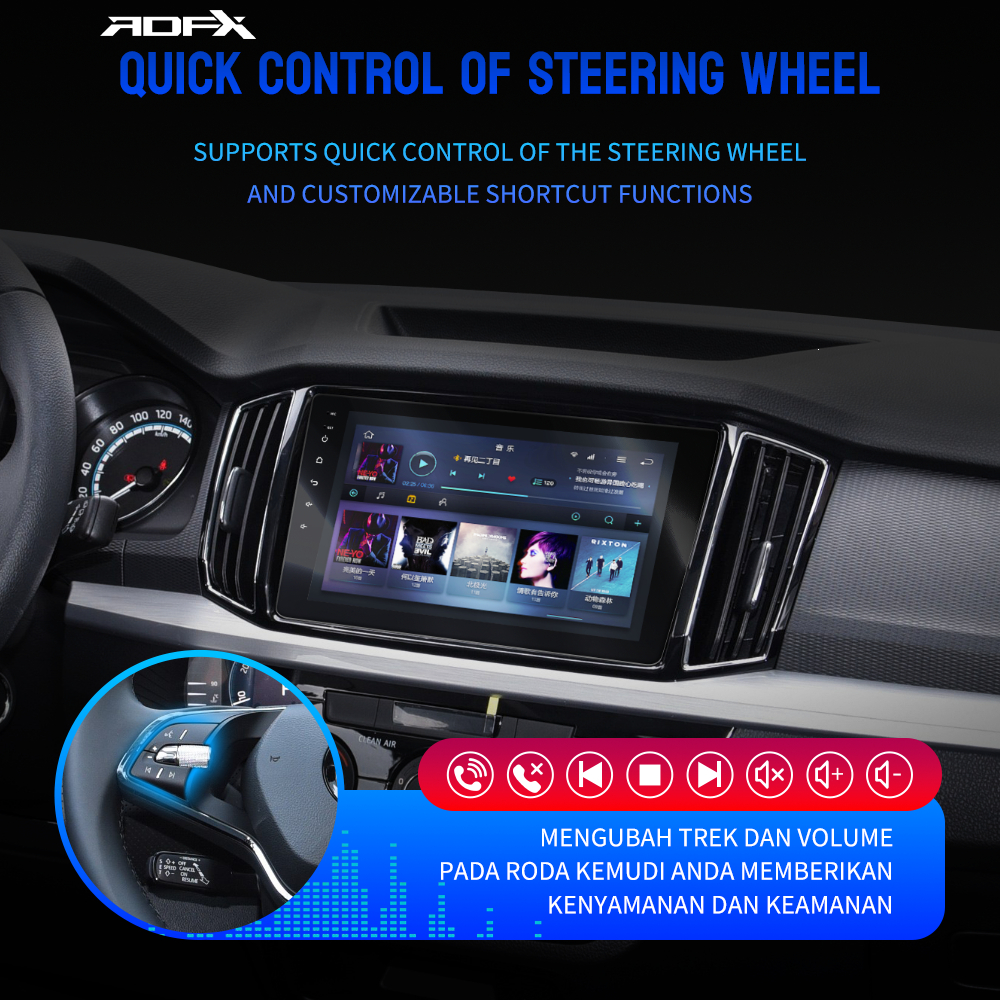 ADFX 9-inci Car Multimedia Android Mendukung Pemutaran Musik CarPlay Kamera Pembalikan Koneksi Bluetooth/USB Unduh Aplik