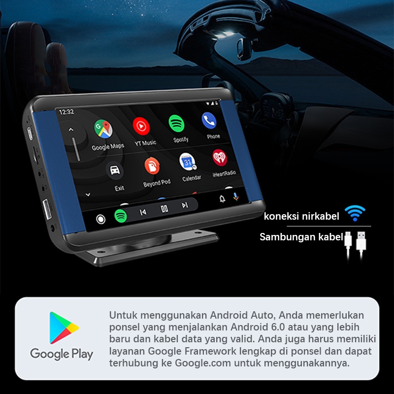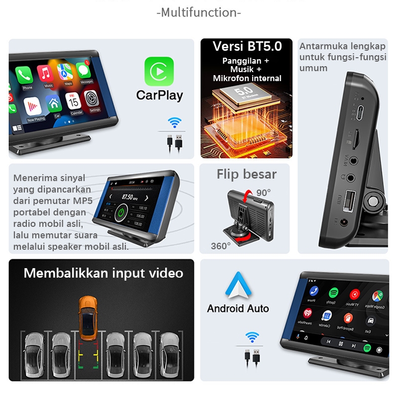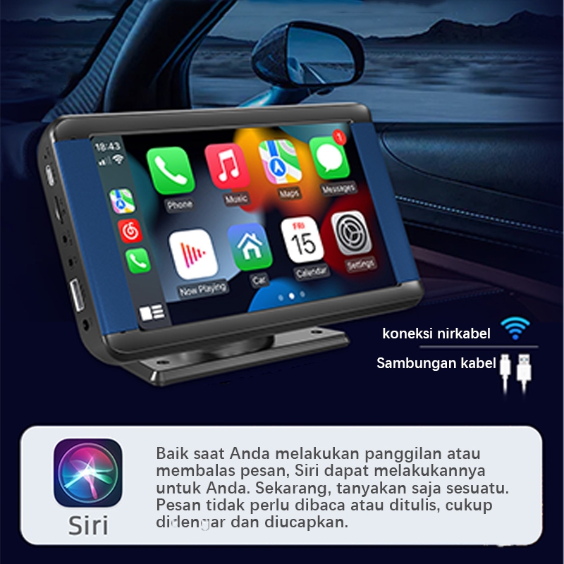 7 inci Wireless Wired CarPlay Android Auto Portabel Mobil Stereo Radio MP5 Player Bluetooth FM AUX B300C