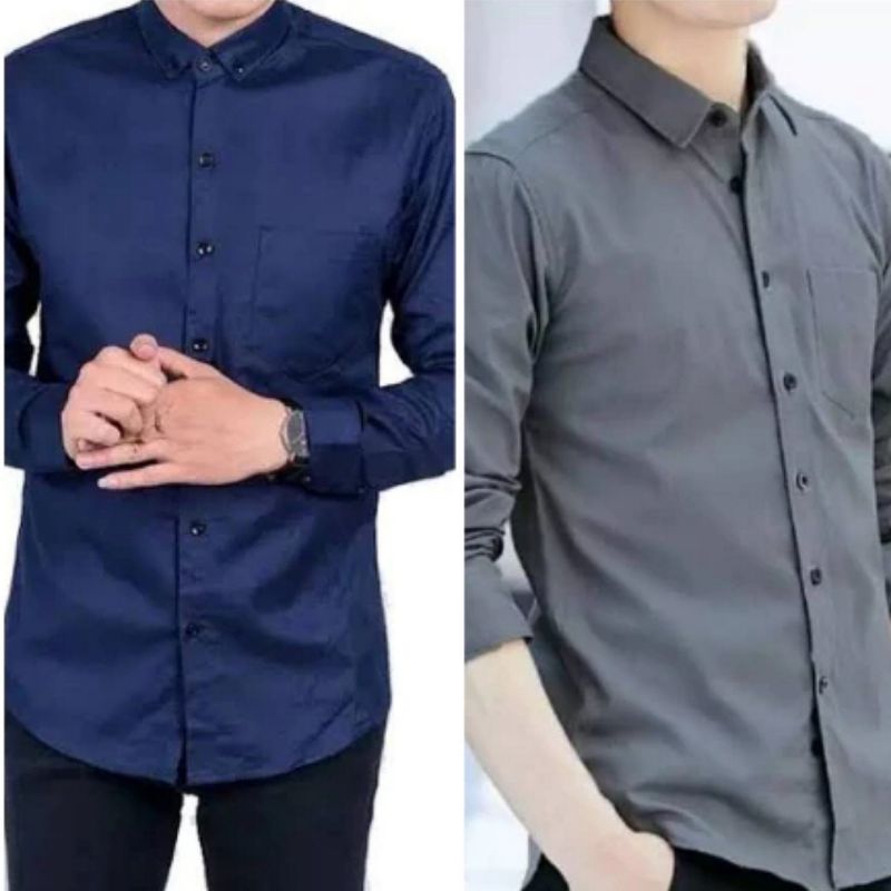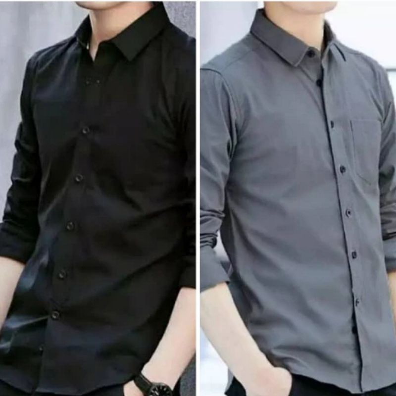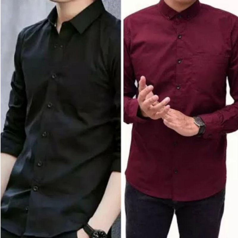 Paket Hemat 2 PCS Kemeja Polos Dewasa Lengan Panjang Hitam Putih Casual Slimfit / Baju Kantor Pria