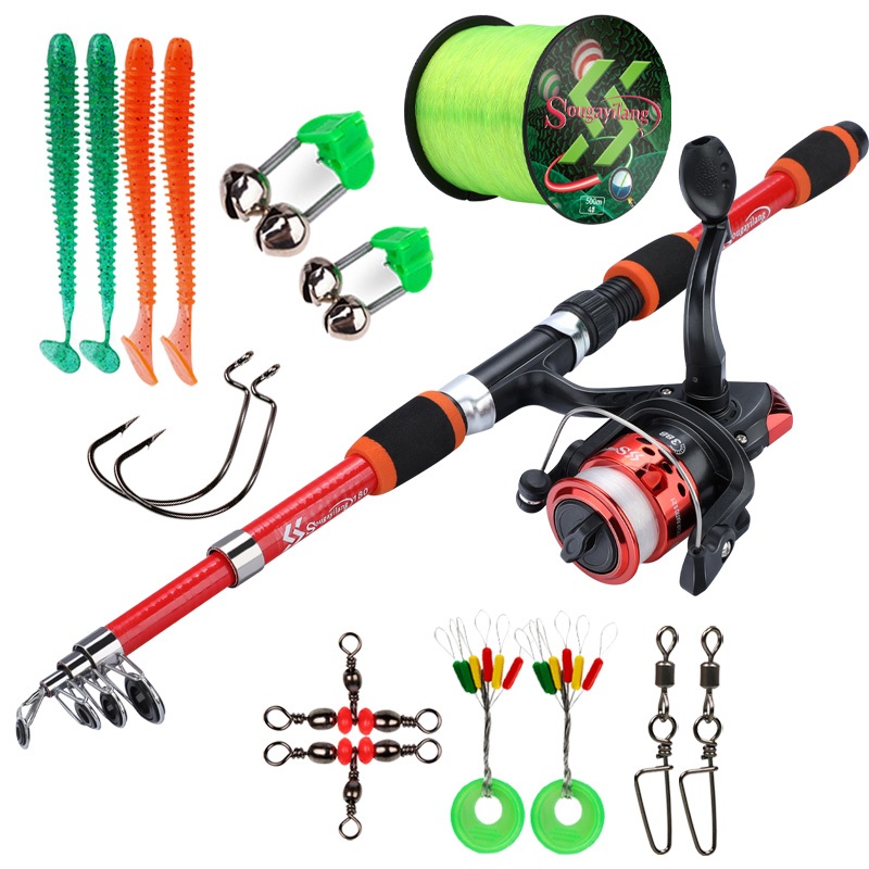 Pancing Set1.8M Telescopic Joran Pancing Rod Ree Pancingl Set EVA Handle Glass Fiber untuk Memancing