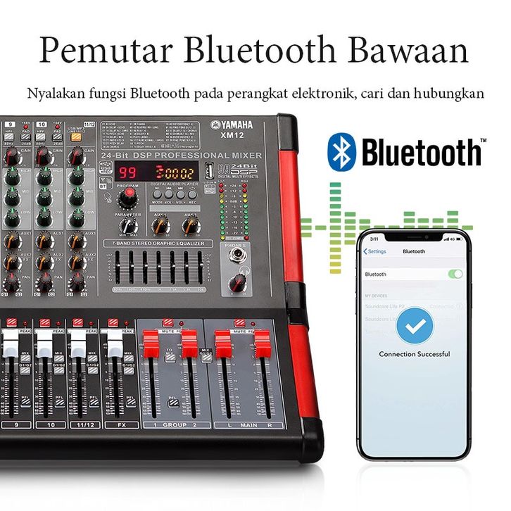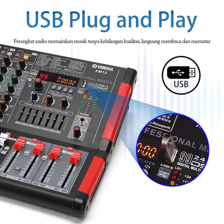Profesional mixer audio yamaha/XM12,2 output grup/built-in 7-band EQ/99 DSP/usb/Bluetooth/48V