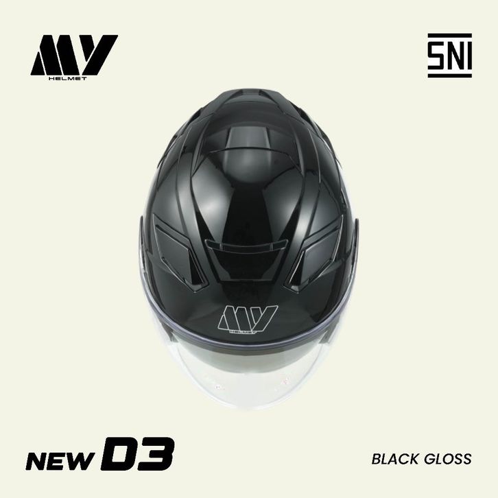 Helm Halface MY D3 Black Gloosy Visor Clear