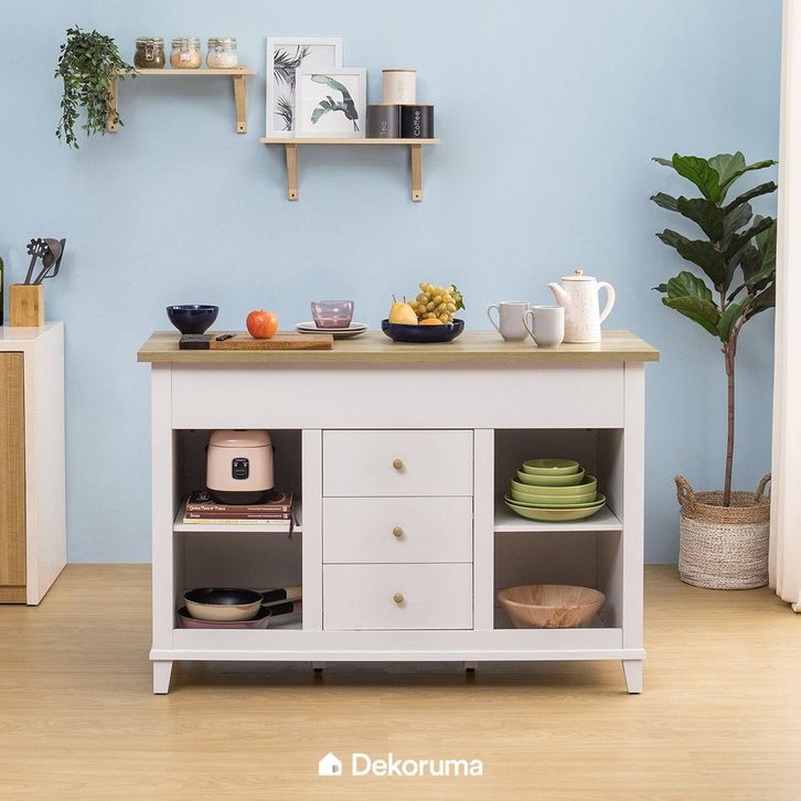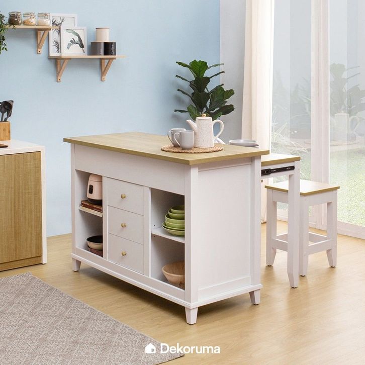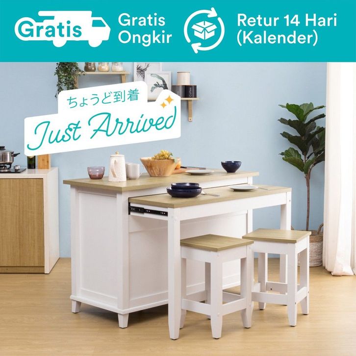 Dekoruma Kanou Meja Makan Kayu Minimalis Extendable atau Meja Dapur dengan 2 Stool | Dining Table