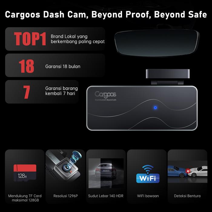 [WiFi] Cargoos O1 Lite 1296P Dash Cam Mobil Support WiFi Aplikasi G-Sensor Kamera Mobil Dashcam Kabel - O1 LITE SAJA