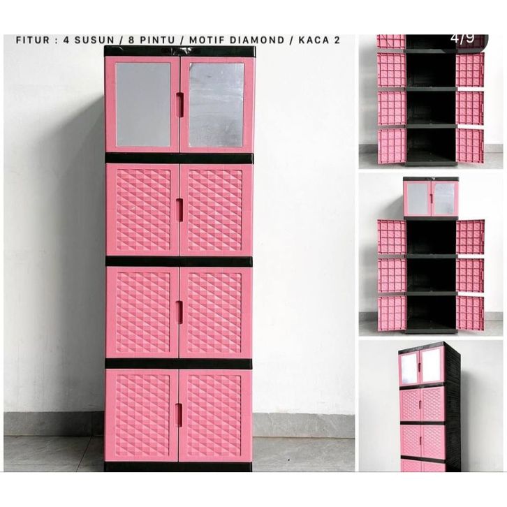 PROMO lemari plastik 4 susun kaca 2 TEBAL, CHet mau warna apa ORIGINAL