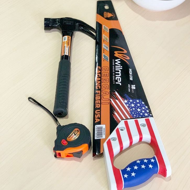 PAKET HEMAT 3 ITEM GERGAJI KAYU/DAHAN/RANTING/BAMBU 16 INCH + PALU 12 OZ+ METERAN 5 METER TEKIRO