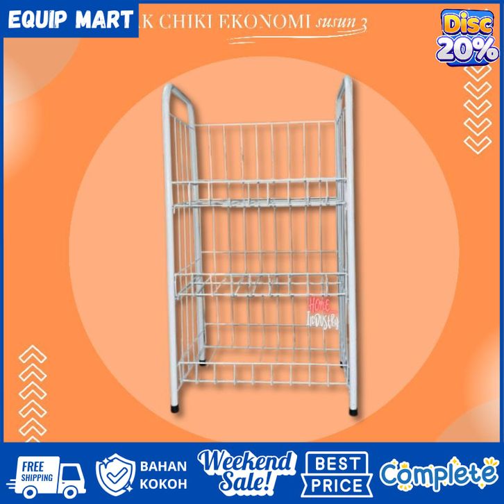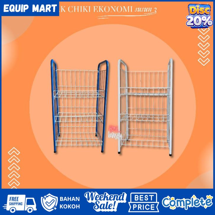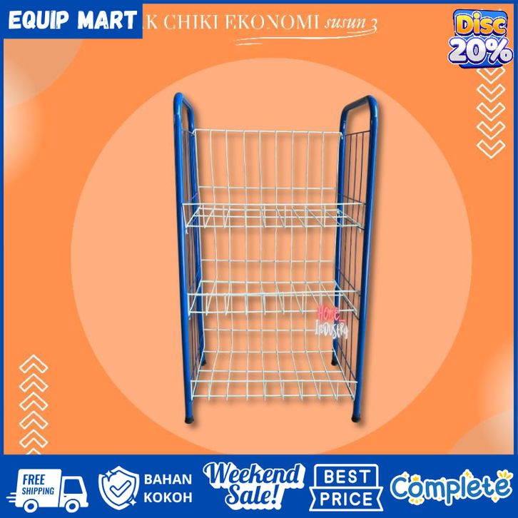 Rak chiki ekonomi susun 3 / rak display / rak toko / rak mini market / rak warung / rak keranjang jajan / rak serbaguna