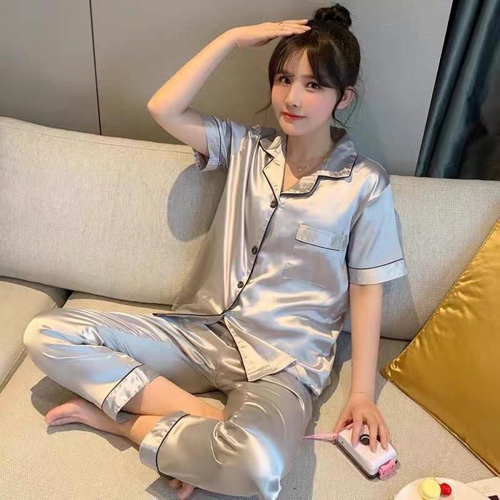 piyama satin wanita lengan pendek celana panjang - CP/Hijau Standar