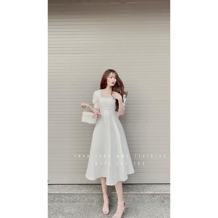 XUKA DRESS KOREAN VINTAGE MIDI POLOS NATAL IMLEK DINNER - Maroon