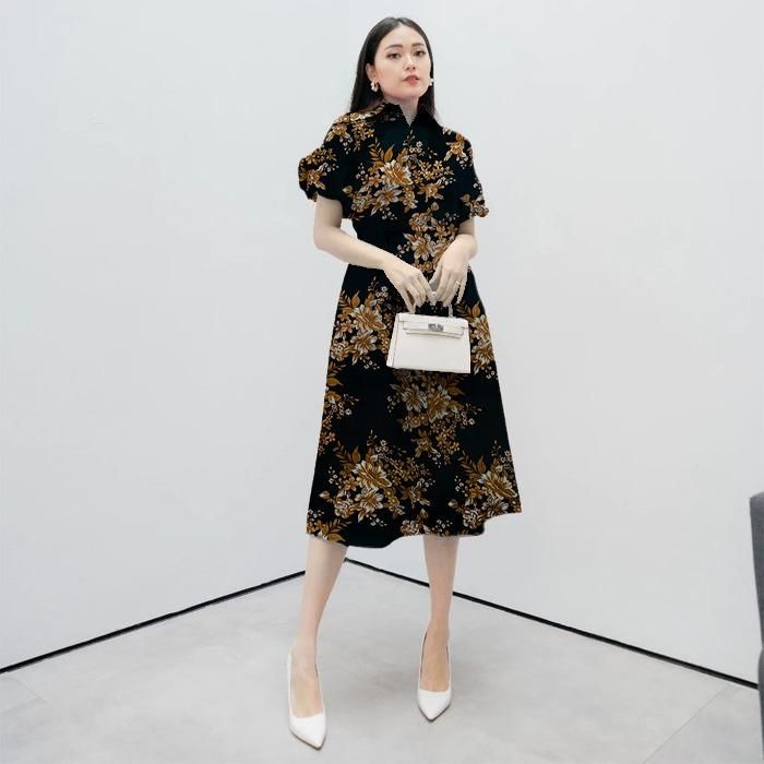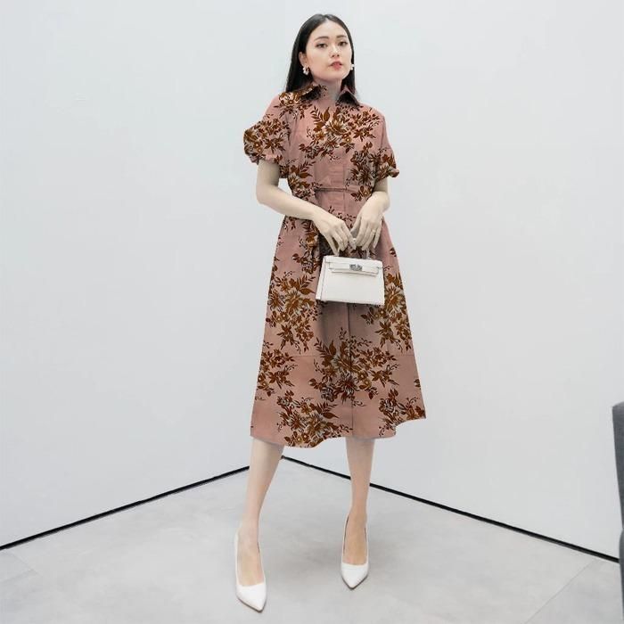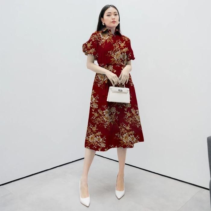 DRESS GELIA BAJU DRESS KOREA DRESS WANITA DRESS Cantik Casual Karet Kerah - MAROON B.C L