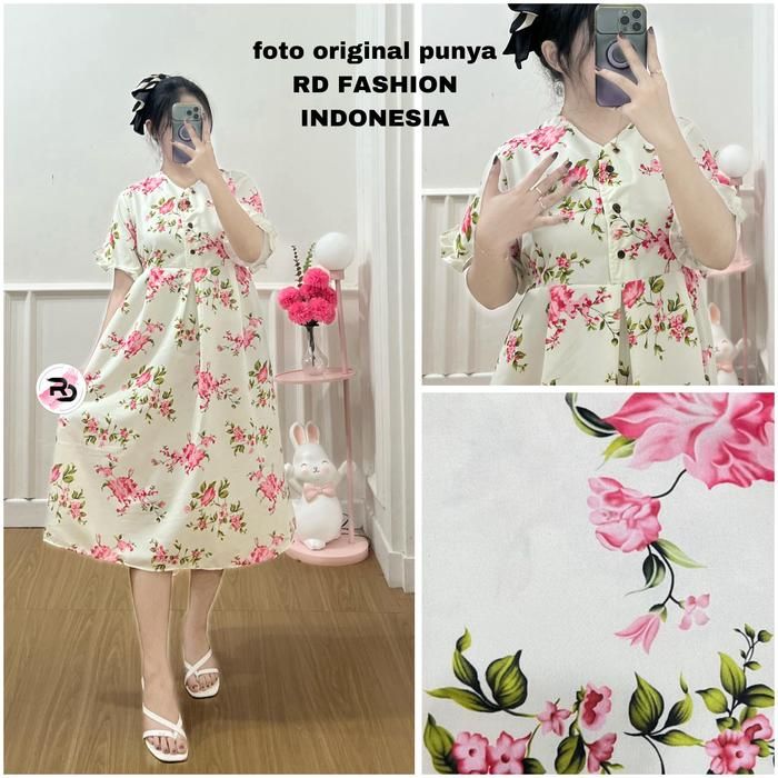 DM - RUBY DRESS / DRESS WANITA MOTIF /DRESS BUMIL BUSUI - Pink Rose
