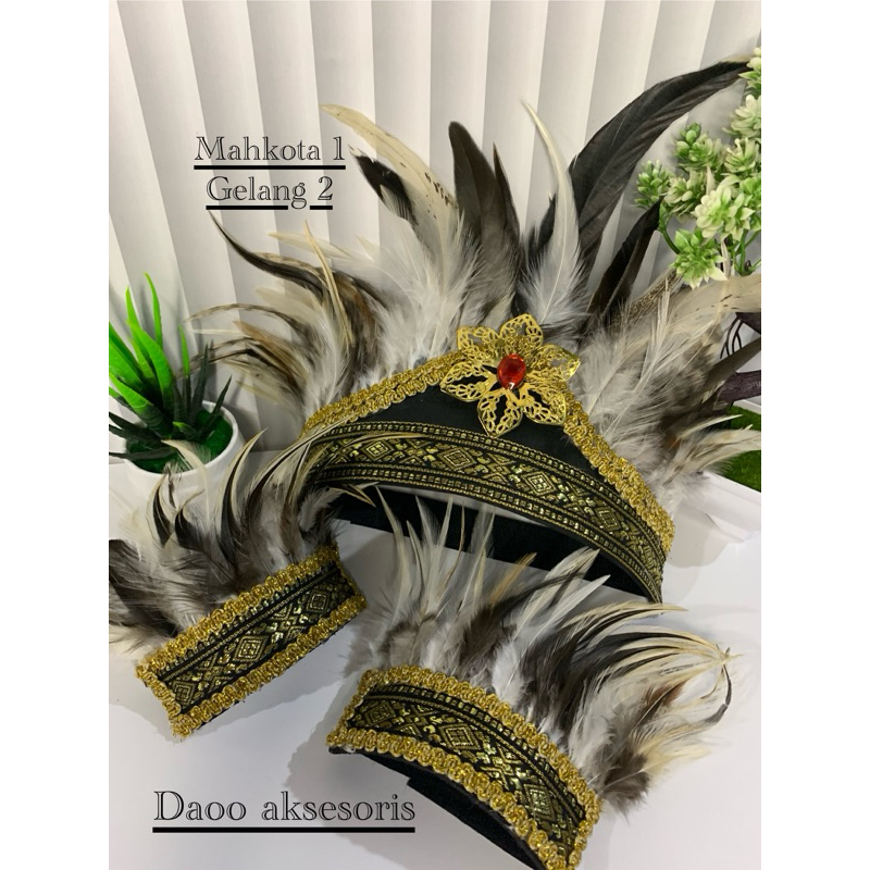 Mahkota adat papua/mahkota bulu /mahkota karnaval/untuk anak dan dewasa bisa buat semua acara mahkota set gelang terbaru