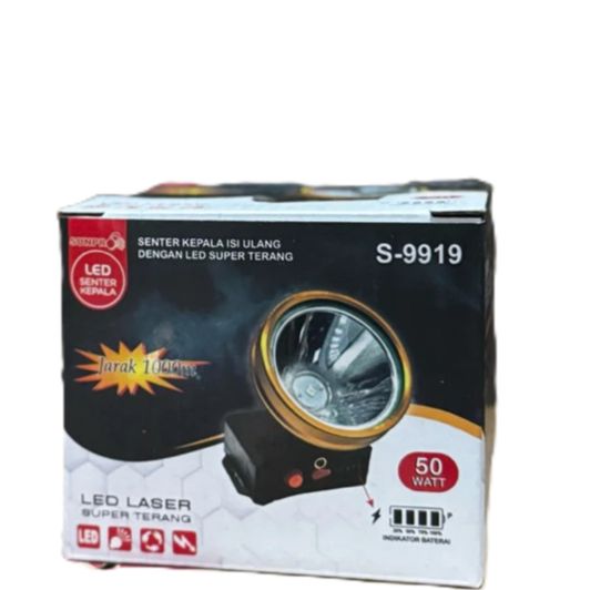 PROMO Headlamp Kepala LED Super Terang Jarak Jauh Senter Kepala Sunpro S-9919 Headlamp 50 Watt 3 m0de SOS Super Terang