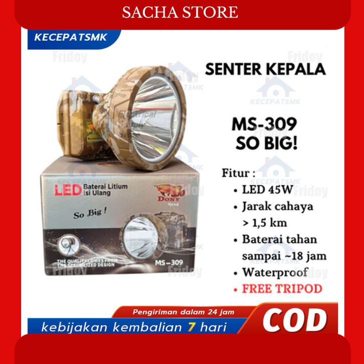 PROMO Headlamp Kepala LED Super Terang Jarak Jauh 【Kecepatan】Senter kepala DONY MS-303 Pengganti KL-178 LORENG 10W9rOSI