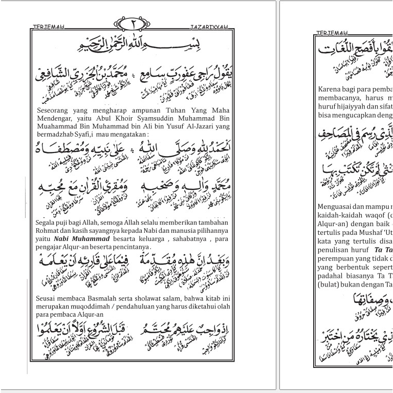 Terjemah Jazariyah Ilmu Tajwid Makna Jawa Pegon dan Indonesia