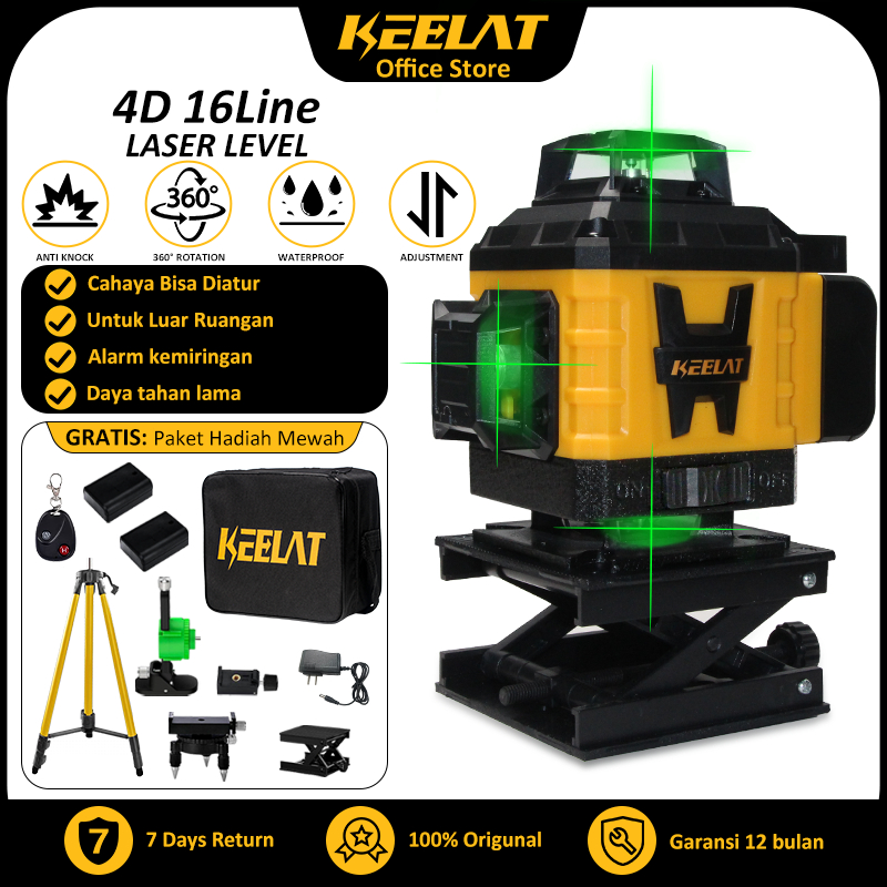 【KEELAT KLL0001】Laser Level 4D 16Lines/12Lines Adjustable 360° Rotary Cross Auto Measuring Self Leveling Tool