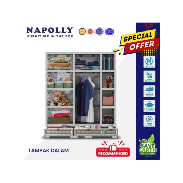 [Star] LEMARI PLASTIK NAPOLLY DC ION 5 PINTU 3 4 SUSUN GANTUNG BAJU PAKAIAN JUMBO BERKUALITAS 2024/2025 CLUB BEST SELLER