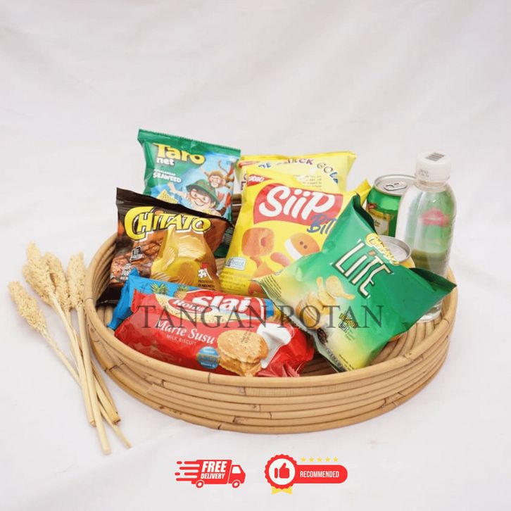 TERLARIS Nampan Rotan Bulat Anyaman Full Anyaman Dan Full Finishing Melamin – Estetis untuk Hidangan dan Hiasan