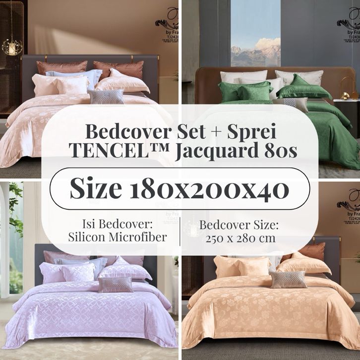 FORTUNA INDAH SPREI - Bedcover Set + Sprei TENCEL™ Jacquard 80s Uk 180x200 Tinggi 40 Isi Microfiber