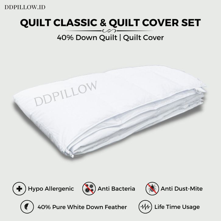 Set Selimut Bulu Angsa Asli + Cover Cotton Stripe, Type Classic 40 Down / Duvet / Selimut Hotel