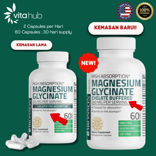 BRONSON Magnesium Glycinate 200mg / 400mg – Suplemen Tidur Nyenyak, Relaksasi Otot & Kesehatan Tulang (Import USA)