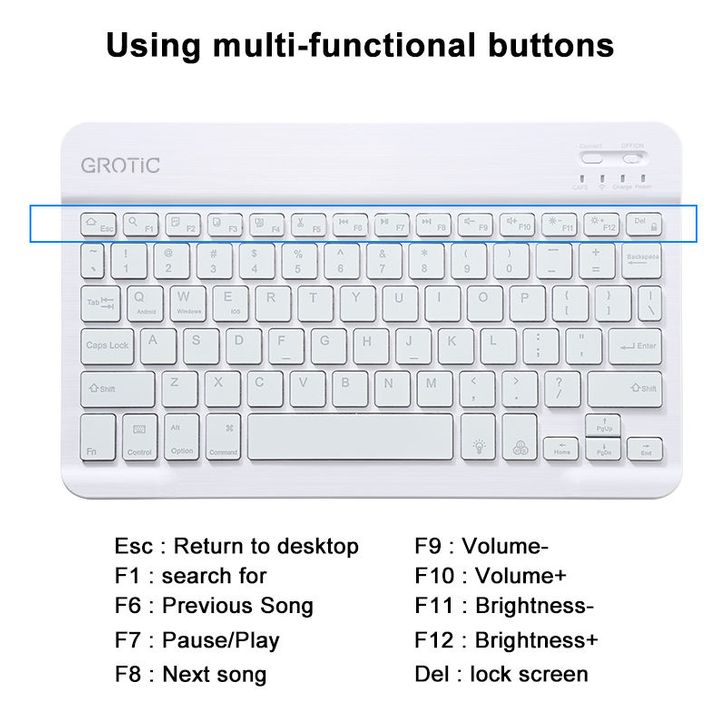 GROTIC Keyboard Mouse Wireless Bluetooth LED Backlight 10 inch Untuk Laptop & Tablet