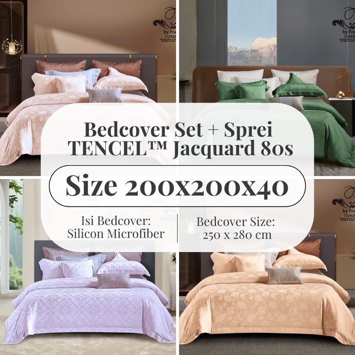 FORTUNA INDAH SPREI - Bedcover Set + Sprei TENCEL™ Jacquard Uk 200x200 Tinggi 40 80s Isi Microfiber