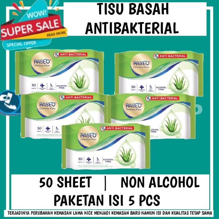 paketan tisu basah paseo antibakterial paketan 5 pcs