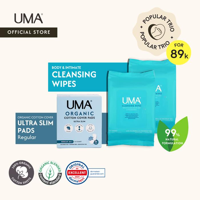 UMA Ultra Slim Regular Pads 24cm + Body & Intimate Cleansing Wipes (2 Pack) | Pembalut & Tisu Basah Organik