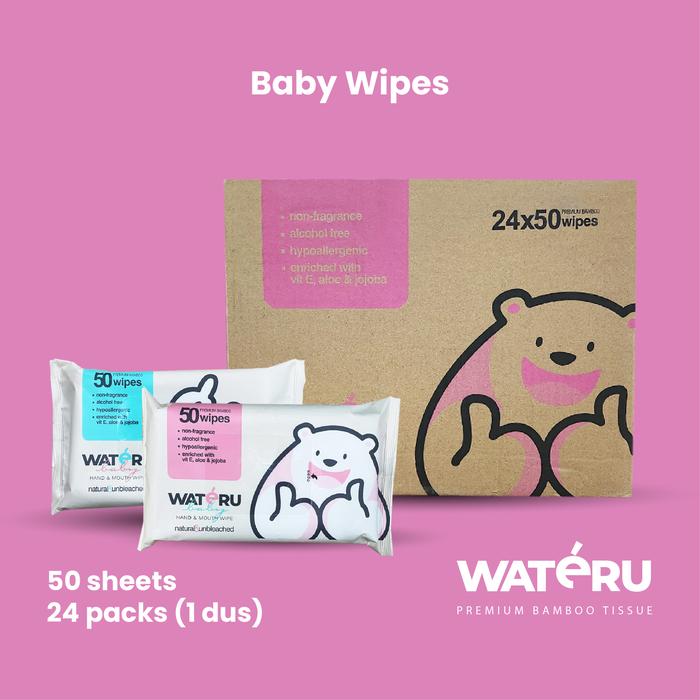 Wateru Bamboo Baby Wipes / Tisu Basah Bamb Hand & Mouth 50s (24 pack)
