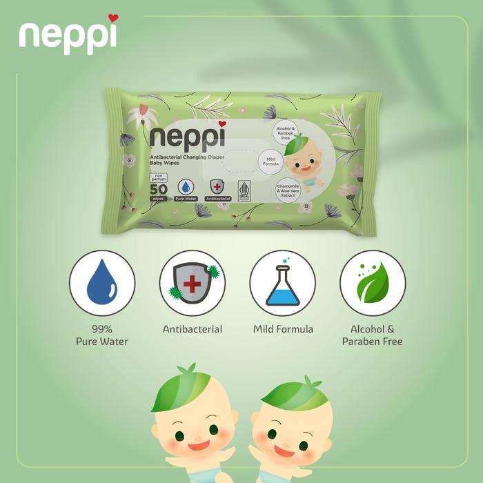 (10 Pcs x 50 Lembar) Neppi Tisu / Tissue Basah Antibacterial Changing diapers Wipes Non Parfum Aloe Bayi
