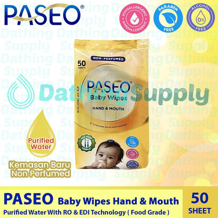 ( PAKET 4 BUNDED ) Tissue PASEO Baby Wipes Wet Chamomile 50 Sheet / Tisu Basah Bayi Bebas Paraben