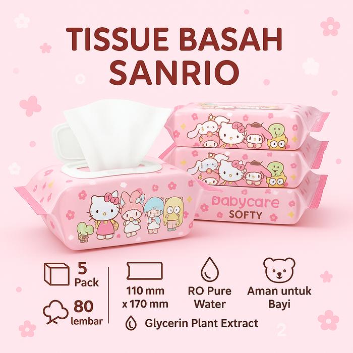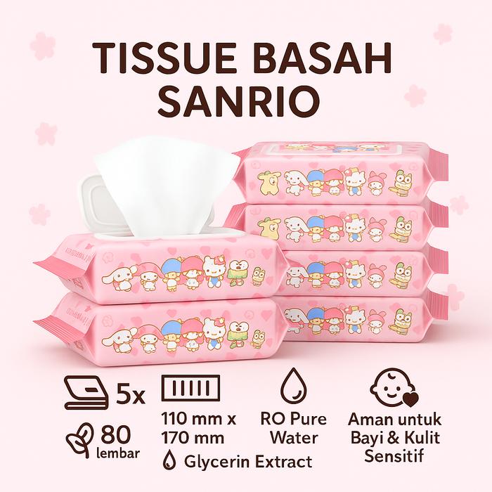 Tissue Basah Sanrio Baby Wipes 50 Sheets Tisu Hemat