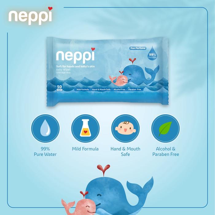 (10 Pcs x 50 Lembar) Neppi Baby Tisu / Tissue Basah Wipes Non Parfum Aloe Bayi Peralatan Diaper