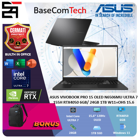 ASUS VIVOBOOK PRO 15 OLED N6506MU ULTRA 7 155H RTX4050 6GB 24GB 1TB WINDOWS 11+OHS 15.6 INCH 3K 120HZ