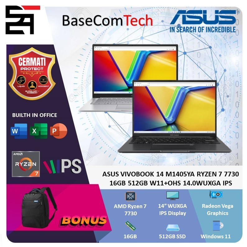 ASUS VIVOBOOK 14 M1405YA RYZEN 7 7730 16GB 512GB W11+OHS 14 INCHI WUXGA IPS