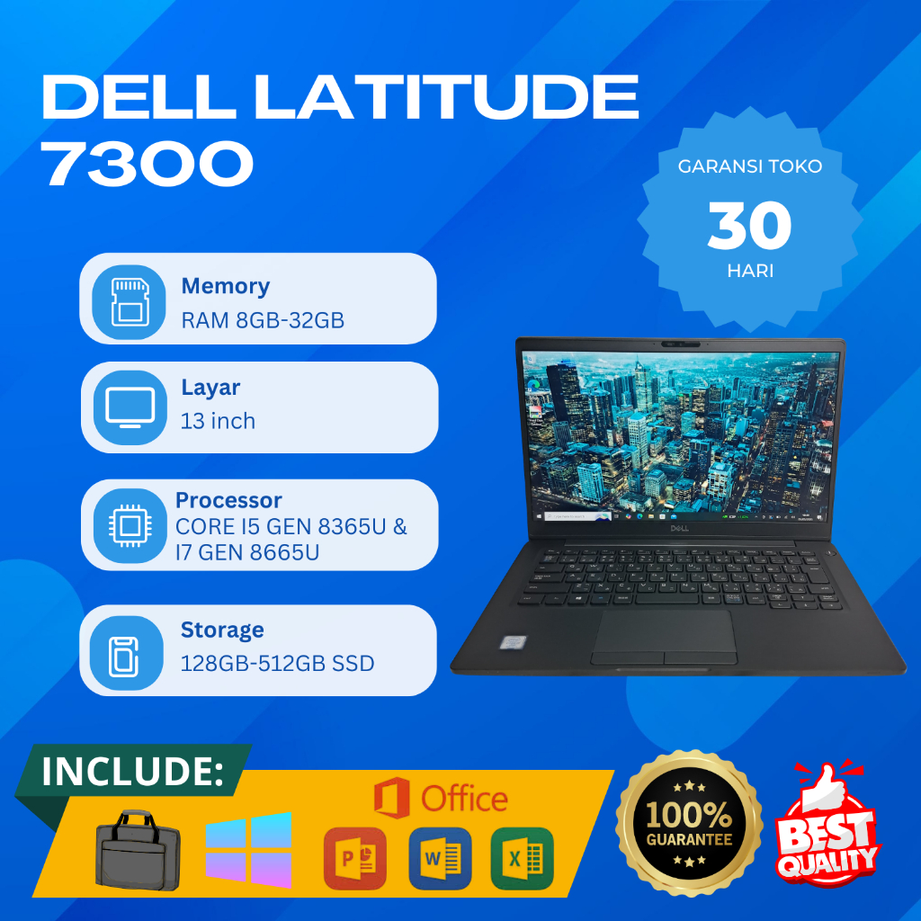 LAPTOP DELL LATITUDE 7300 INTEL CORE I5 GEN 8365U & I7 GEN 8665U RAM 8GB/16GB SSD LAYAR 13 INCH SECOND BERGARANSI MURAH