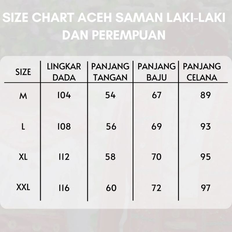 Baju adat dewasa tari Saman Aceh satuan (Laki/Cewek)