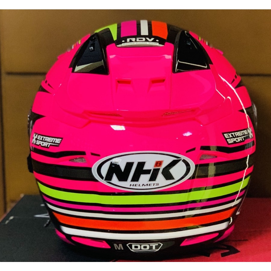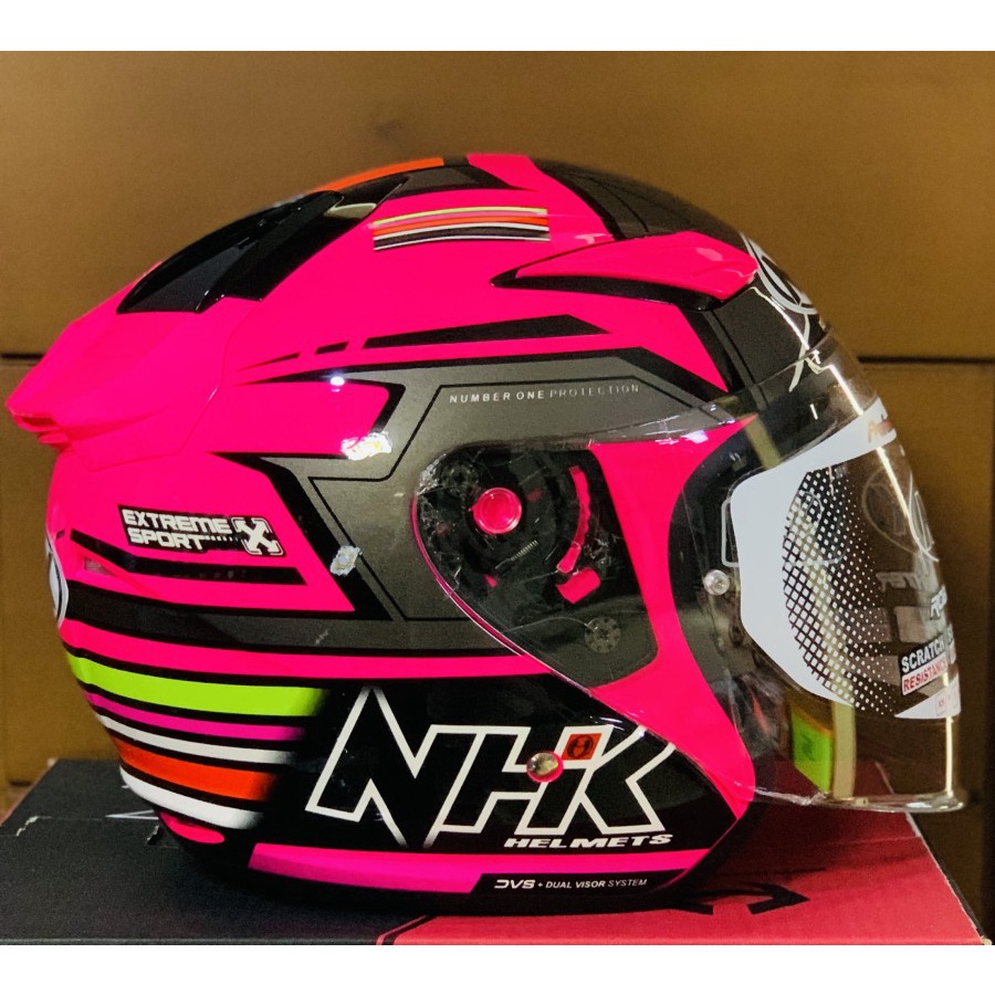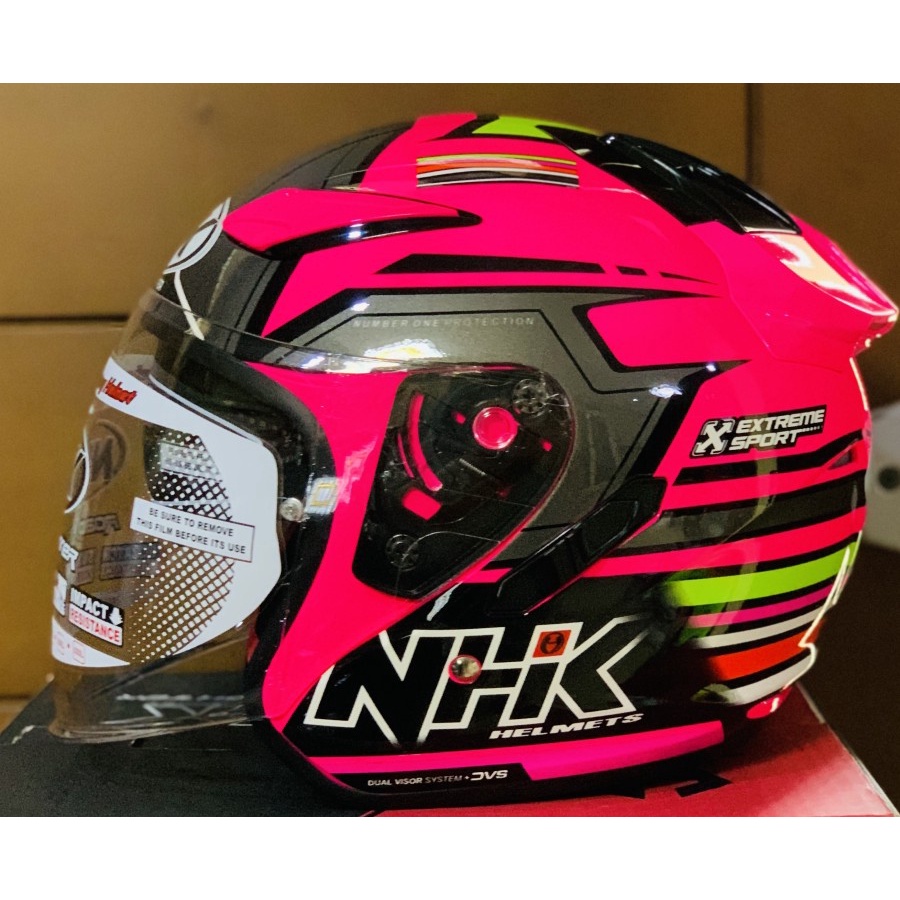 Helm NHK R1 Rainbow Pink Fluo Double Visor Half Face - Helem Motor SNI DOT Touring Dewasa Pria Wanita Cewek Cowok Helmet
