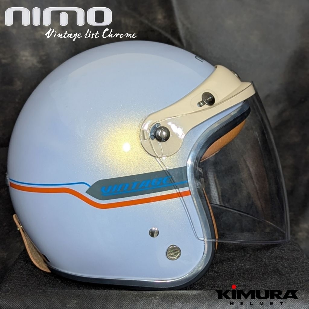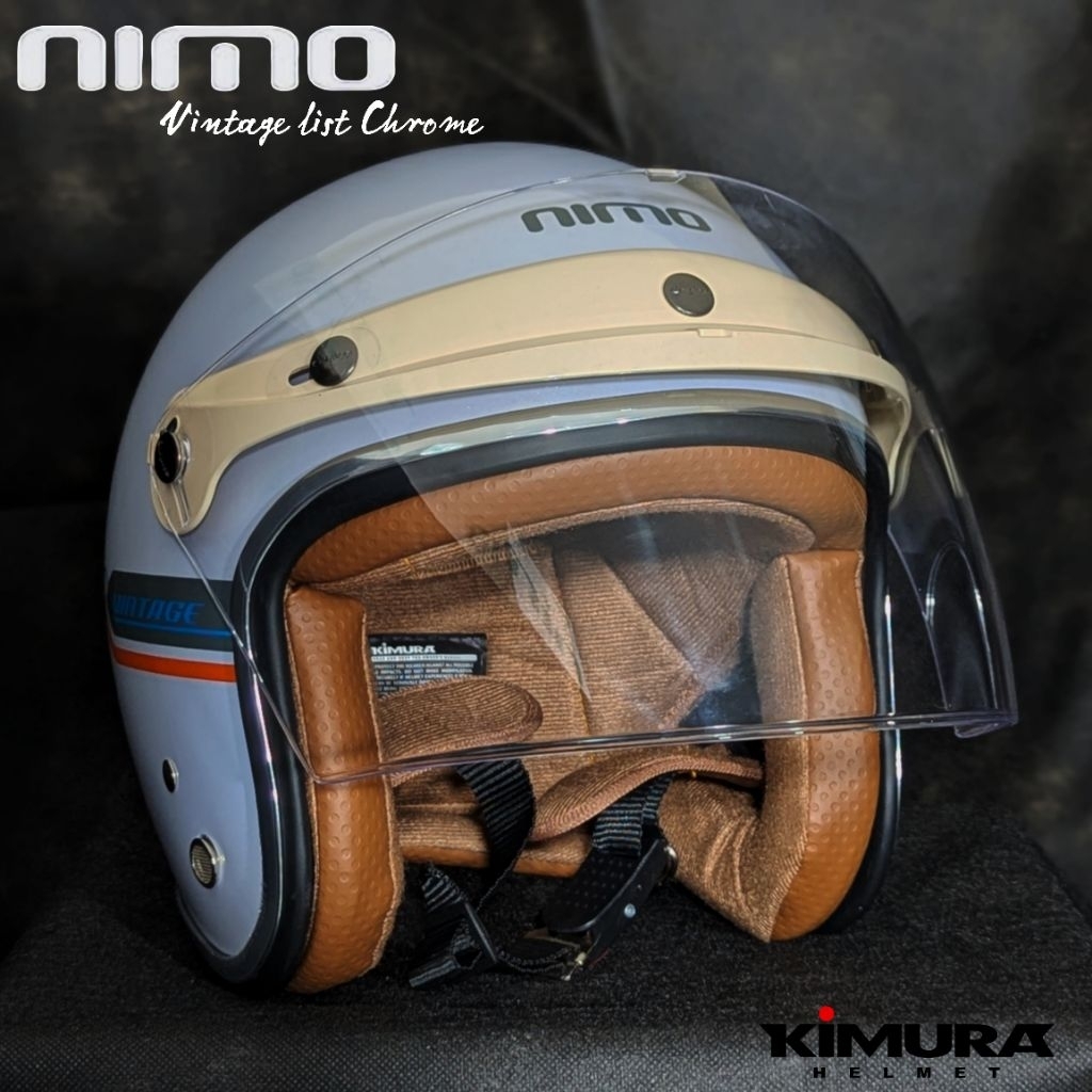 HELM BOGO NIMO SERIES VINTAGE KACA FREAM HELM PREMIUM ABS MOONLIGHT WHITE