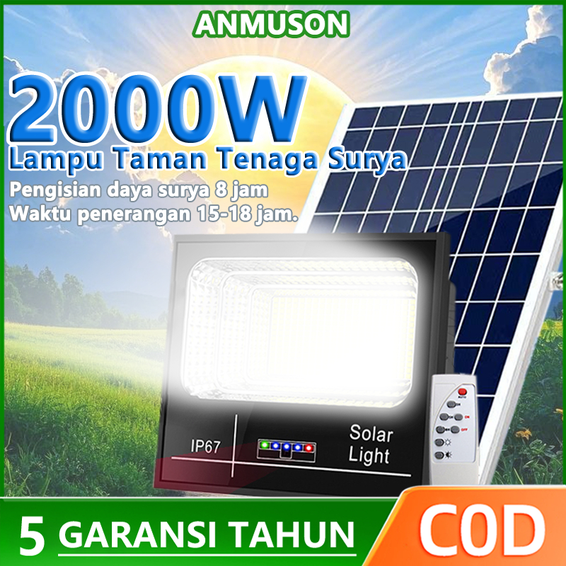Anmuson 2000W Solar Cell Lampu 2000W Lampu Solar Lampu Putih Solar Cell Lar Panel Waterproof Solar Cell Lampu Lampu Led