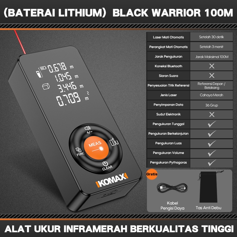 Meteran Laser Digital Electronic Accuracy Ruler Infrared 60 100 Meter KM60S KM100S AKURAT