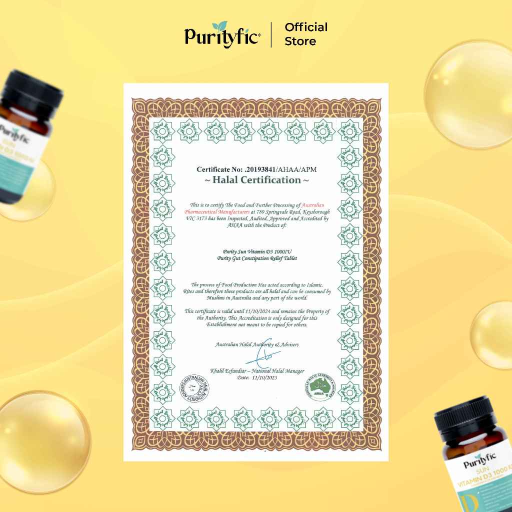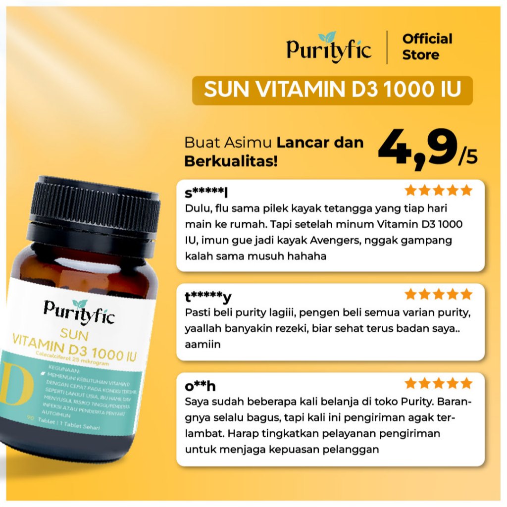 Vitamin D3 1000 IU Purityfic Sun Australia – Suplemen Tulang, Imun & Kesehatan Tubuh (90 Tablet BPOM)