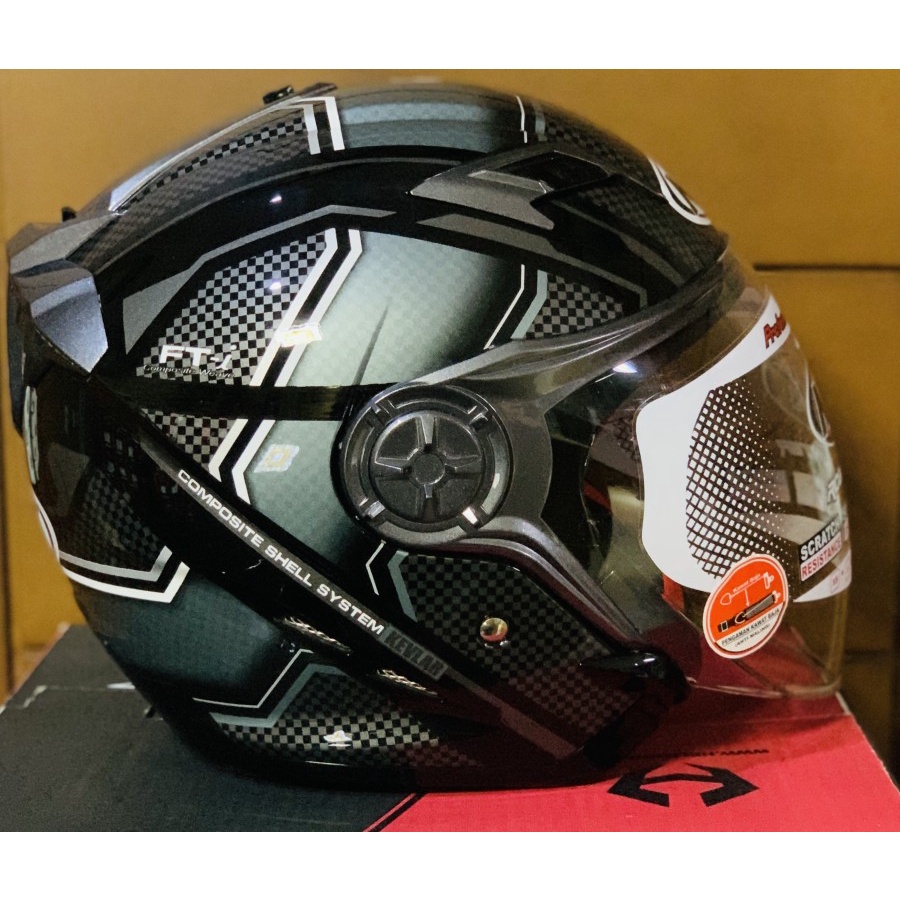 Helm NHK Gladiator FTI Black Silver Glossy Double Visor Half Face - Helem Motor SNI DOT Touring Dewasa Pria Wanita Cewek