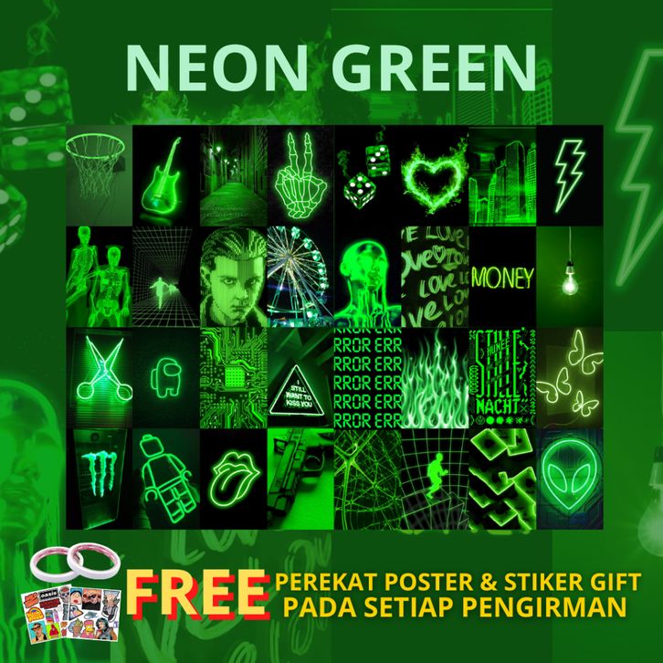 BARU Poster Dinding Aeshtetic Neon Green isi 48pcs aberl