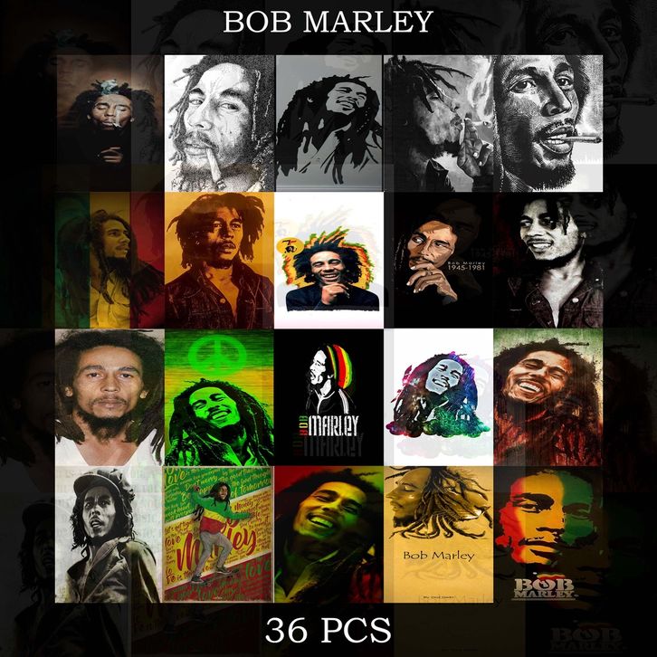 PREMIUM [] 1 Set 36Pcs Poster Bob Marley Dekorasi Dinding Poster Wall Stiker Hiasan Dinding Kamar Tidur ifekb