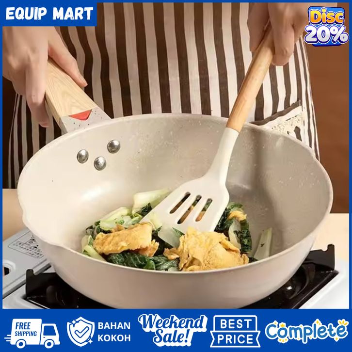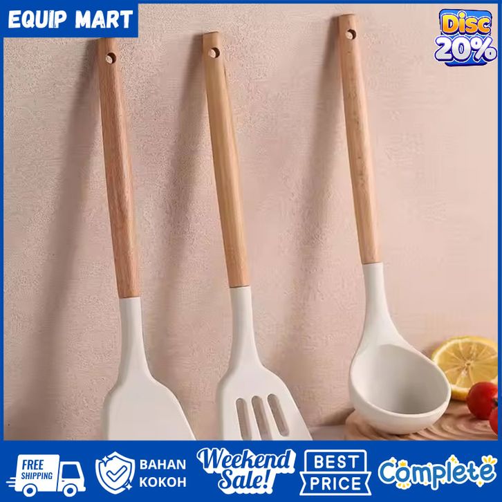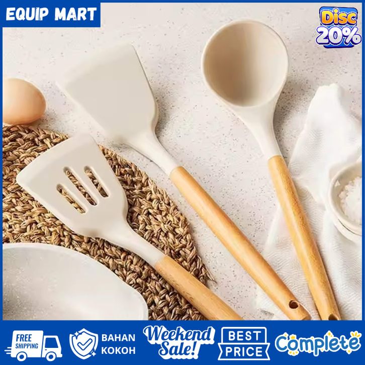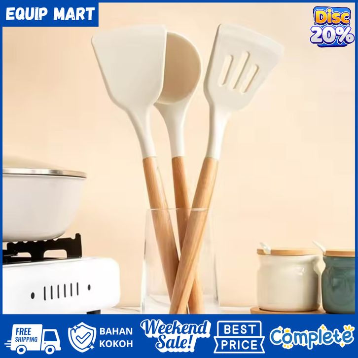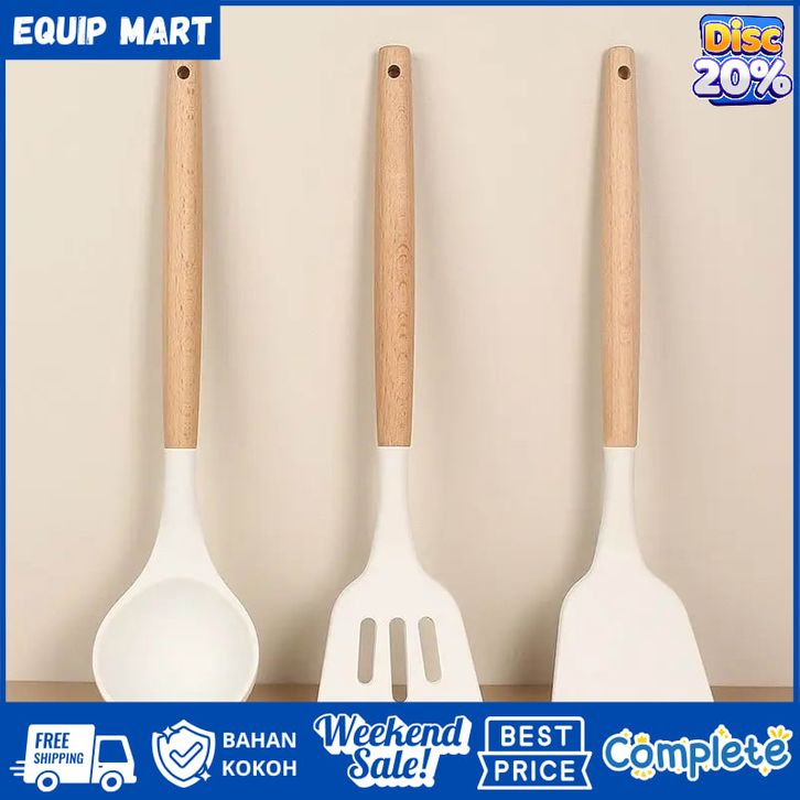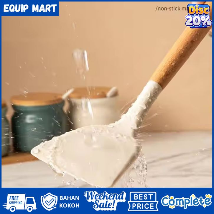 1 Set Peralatan Dapur 3 PCS Set Peralatan Masak Spatula Silicon Gagang Kayu Tahan Panas Food Grade