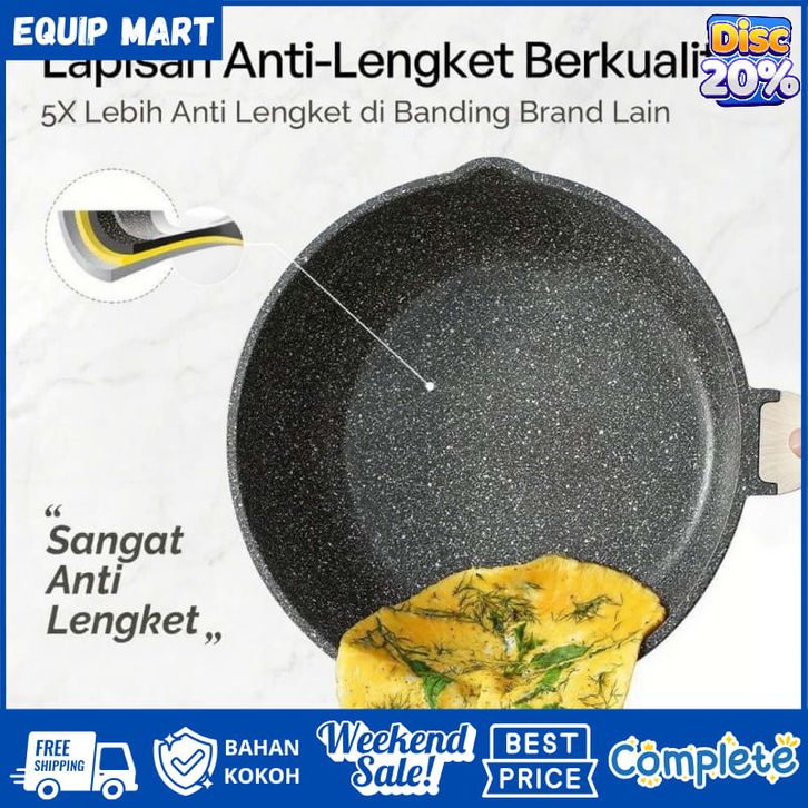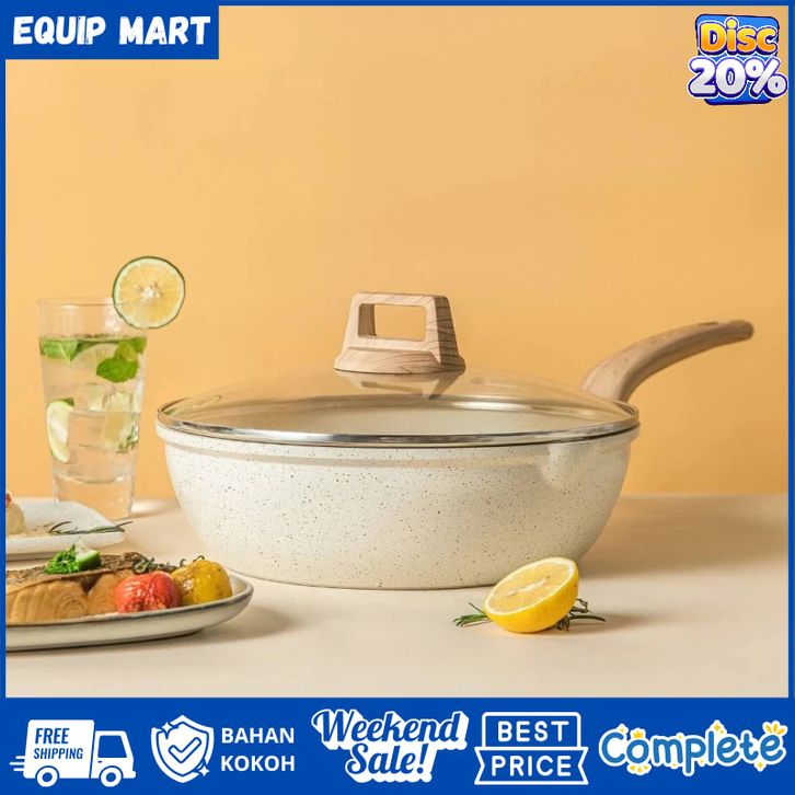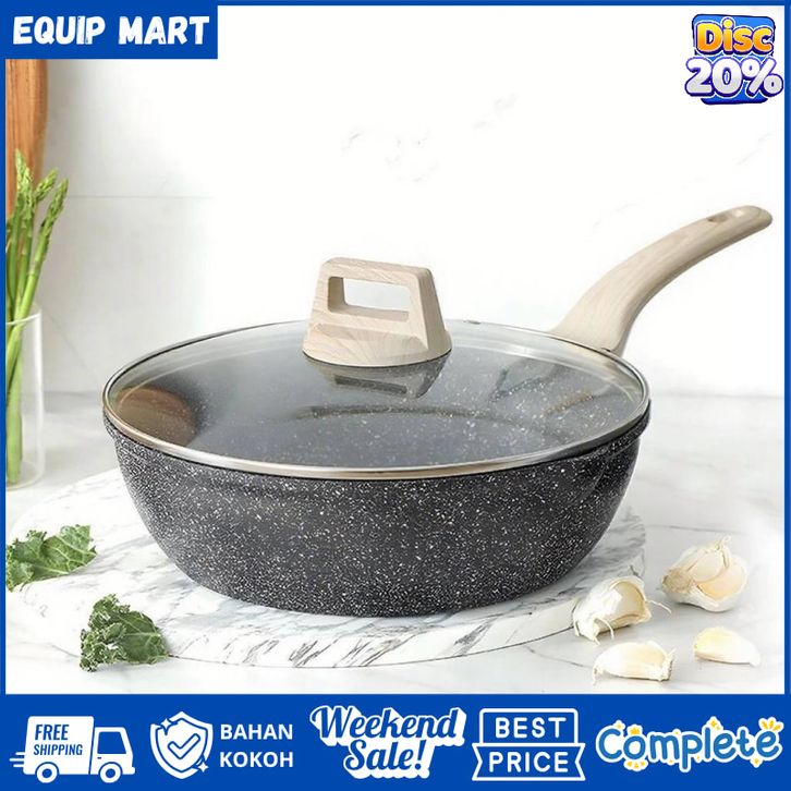 Pan Panci Wajan Penggorengan Besar Anti Lengket 28cm T-REX Wok Lengkap Dengan Tutup